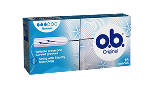 o.b.®-tampongernas vridna kanaler är utformade för att samla upp mensen inuti tampongen och ge dig ett pålitligt skydd. o.b.® Original Normal rekommenderas för dig som har lätt till måttlig blödning.